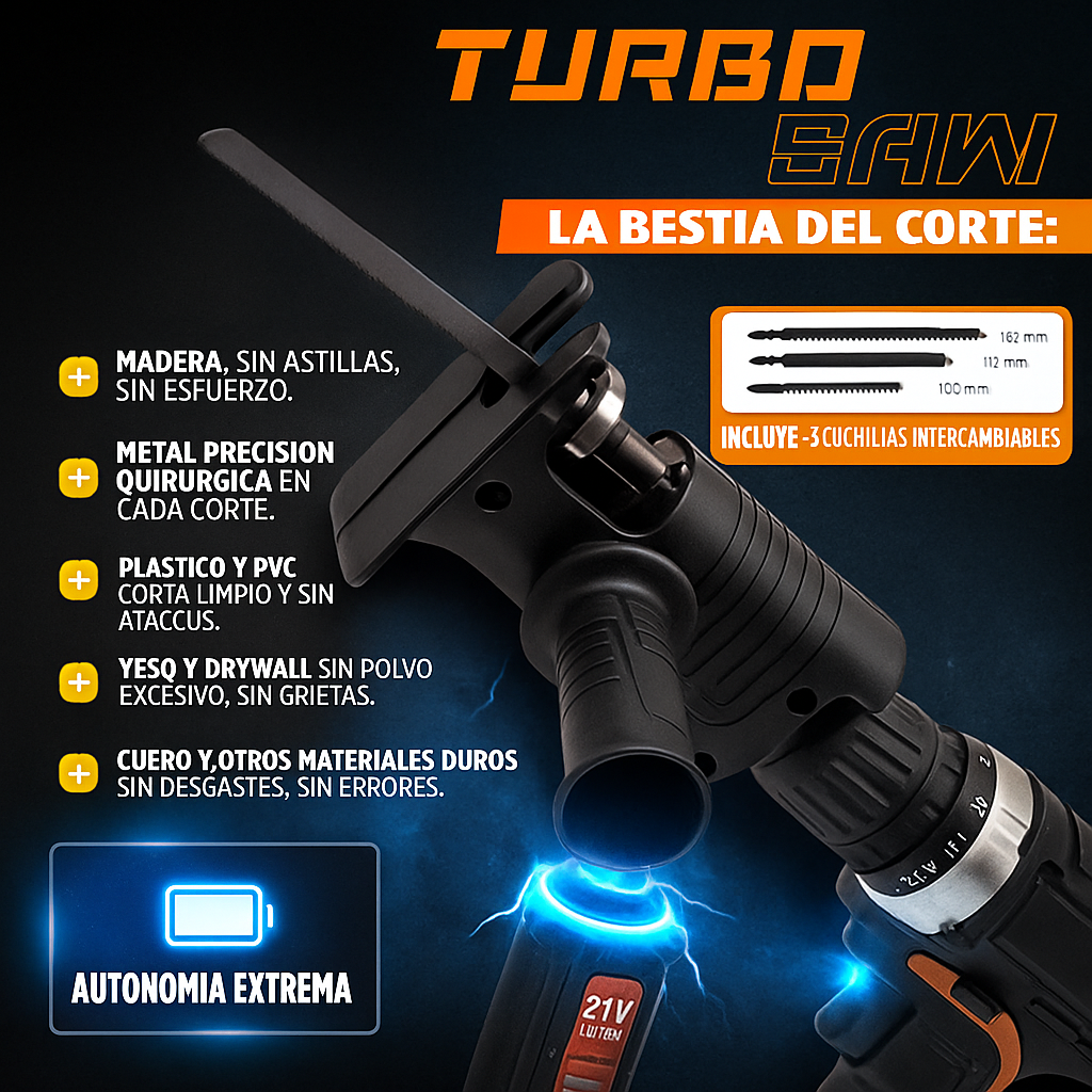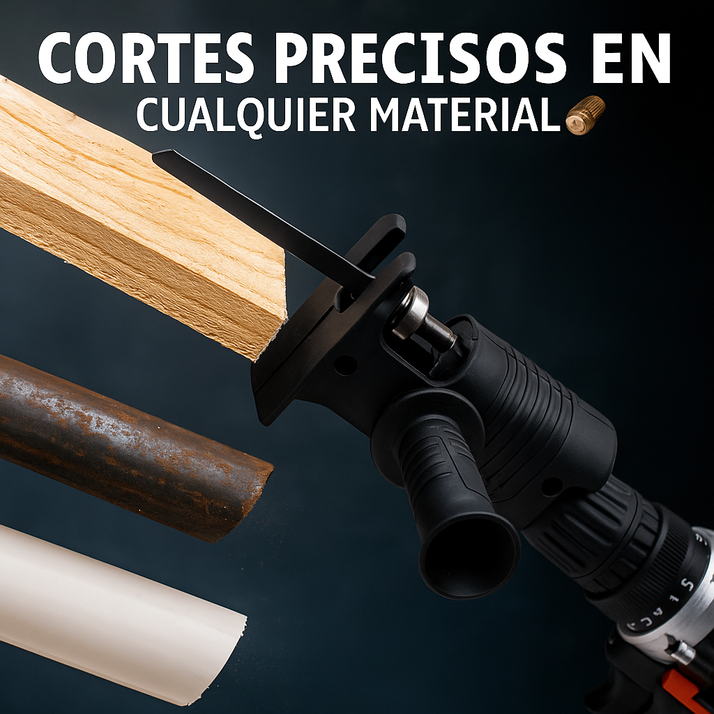 Transforma tu herramienta en una sierra de alto rendimiento capaz de cortar madera, PVC, metal o cerámica con precisión.
