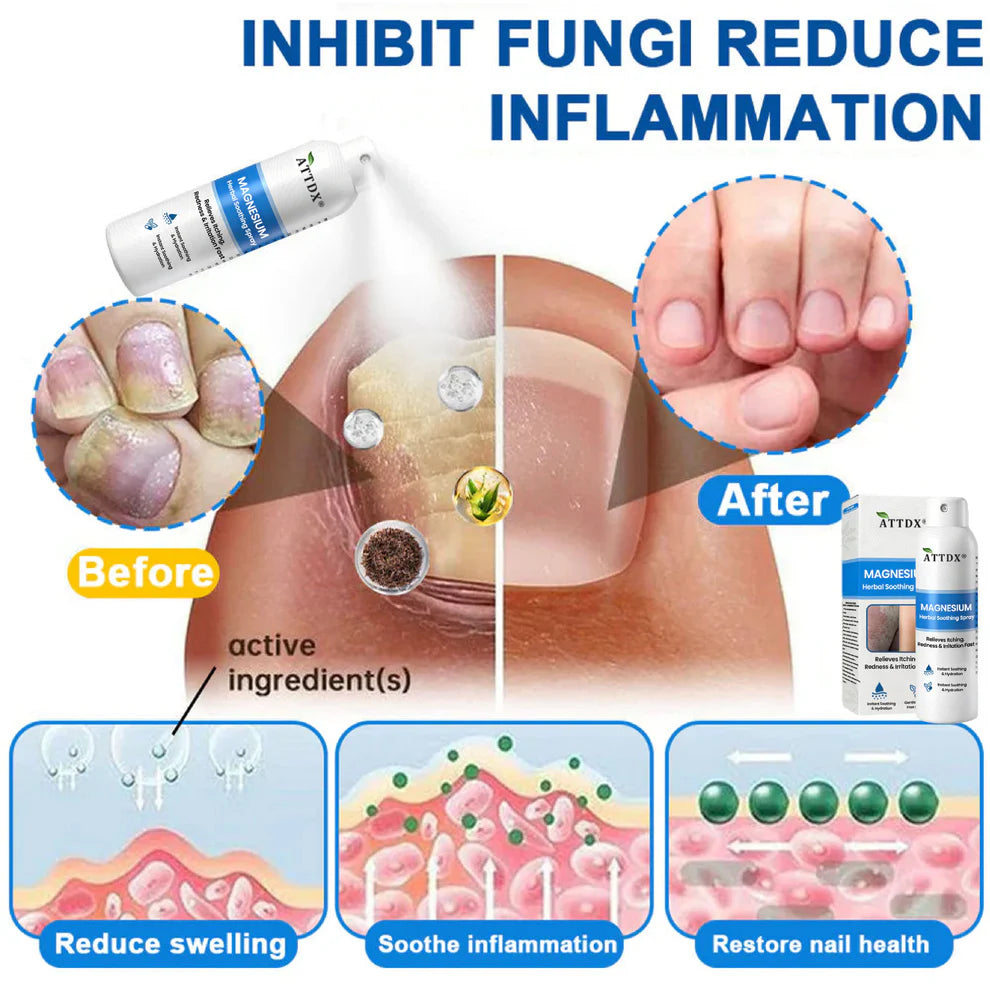 El Spray Calmante Herbal con Magnesio ATTDX® penetra profundamente en la piel, limpiando suavemente desde adentro hacia afuera y aliviando rápidamente la picazón y la inflamación causadas por la psoriasis. Esta fórmula sin esteroides y no irritante es segura para pieles sensibles y dañadas. ATTDX® ayuda a regular la proliferación celular excesiva, alivia el enrojecimiento, la descamación y el escozor, y favorece la restauración de la barrera cutánea natural, devolviéndole el equilibrio y la salud.
