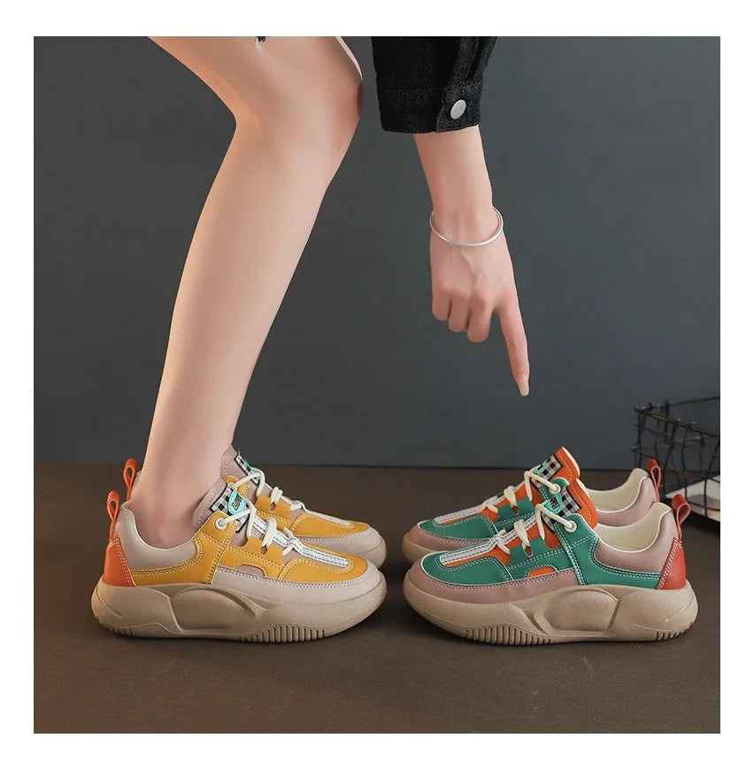 El acabado en tonos mostaza y beige con detalles naranjas los hace irresistibles para quienes buscan destacar con un estilo único, manteniendo al mismo tiempo la comodidad ortopédica necesaria para jornadas largas.