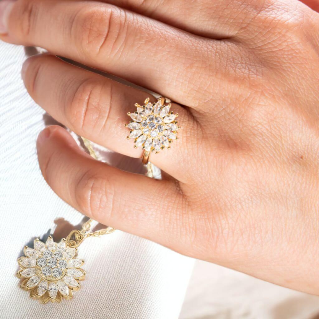 (KIT PRIMAVERA) Collar giratorio de girasol + 🎁¡ANILLO DE GIRASOL OBSEQUIO!🎁