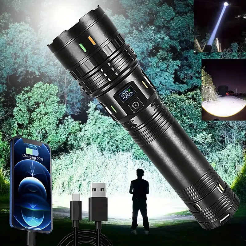 Su tecnología LED de alta potencia permite alcanzar largas distancias, ideal para actividades al aire libre, trabajos nocturnos, cortes de energía o seguridad en el hogar.